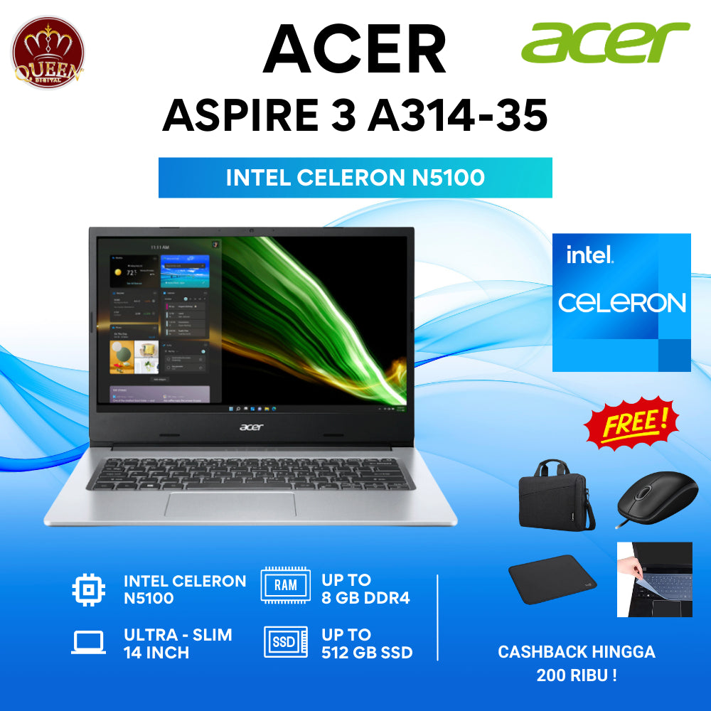 ACER ASPIRE 3 A314-35 | INTEL CELERON N5100 | 8GB RAM | SSD 512GB | 14 INCH