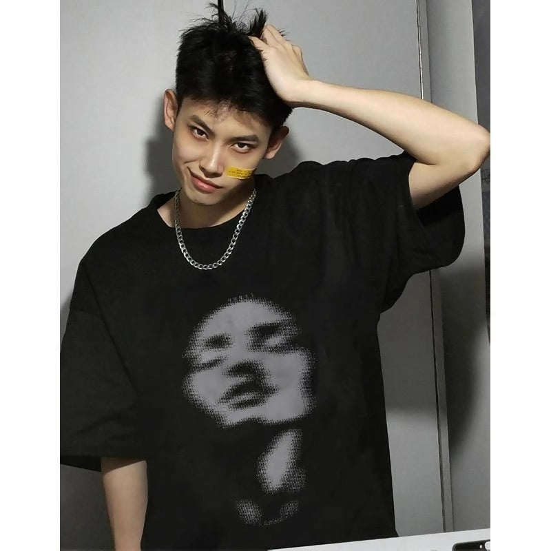 baju kaos oversize pria oversized t shirt oversized t shirt pria kaos oblong pria baju pria kaos hitam pria baju kaos cowok kaos Trendy retro face print