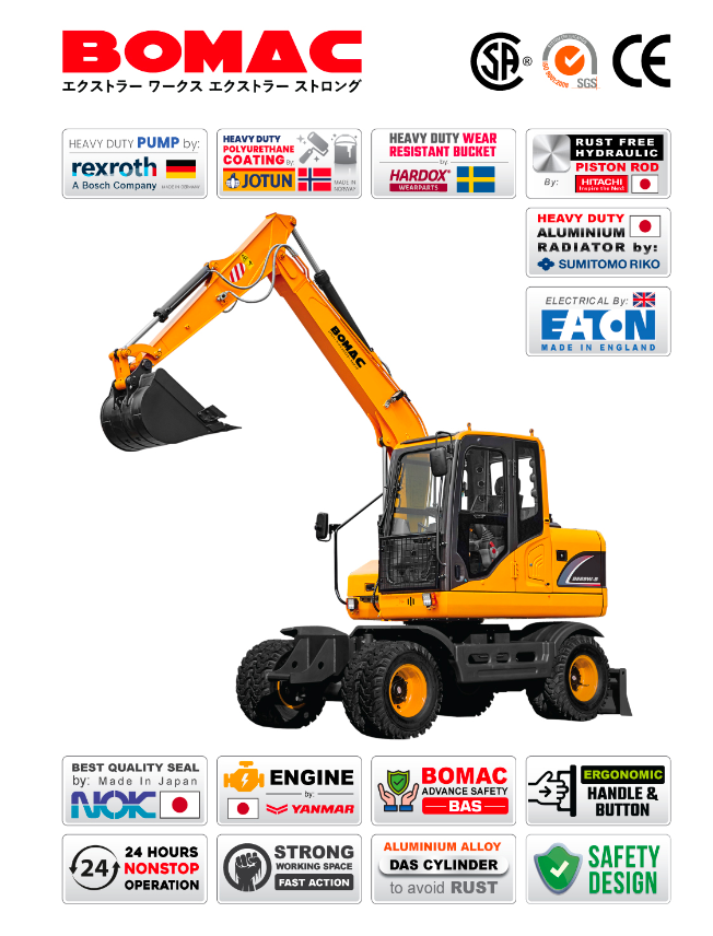 BOMAC Heavy Duty Wheel Excavator with YANMAR Engine, JAPAN • Model : BE69W-B