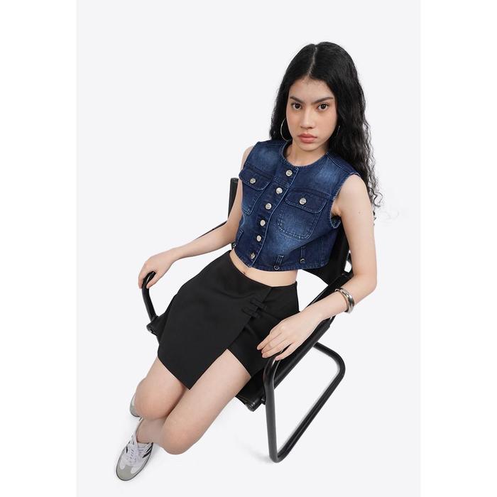 - Atasan Tanpa Lengan - Round Neck - Crop Length - Double Front Pocket With Button - Fitting: Fitted Crop... Read more
