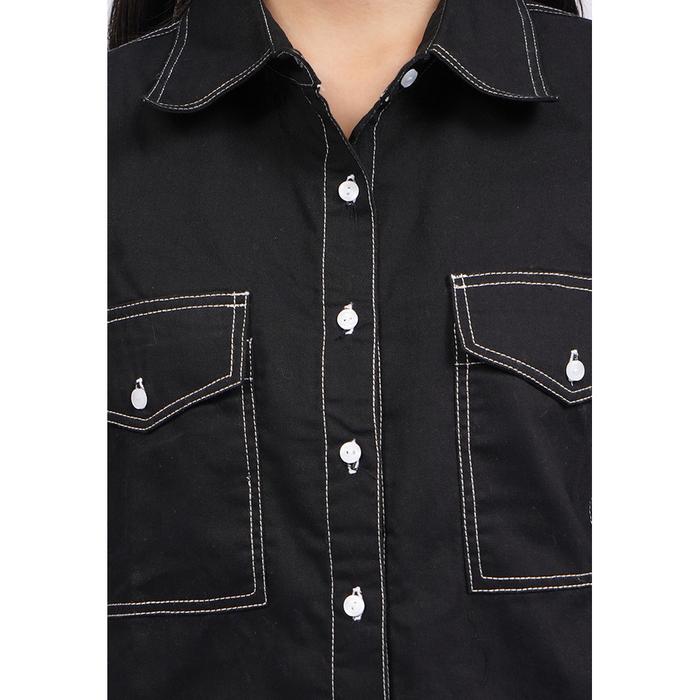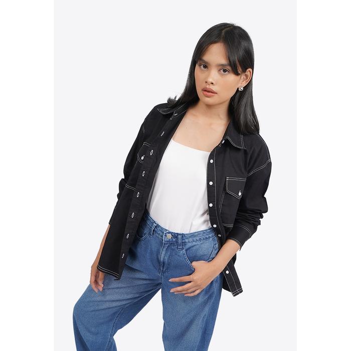 COLORBOX Contrast Stitch Long Sleeve Shirt Black