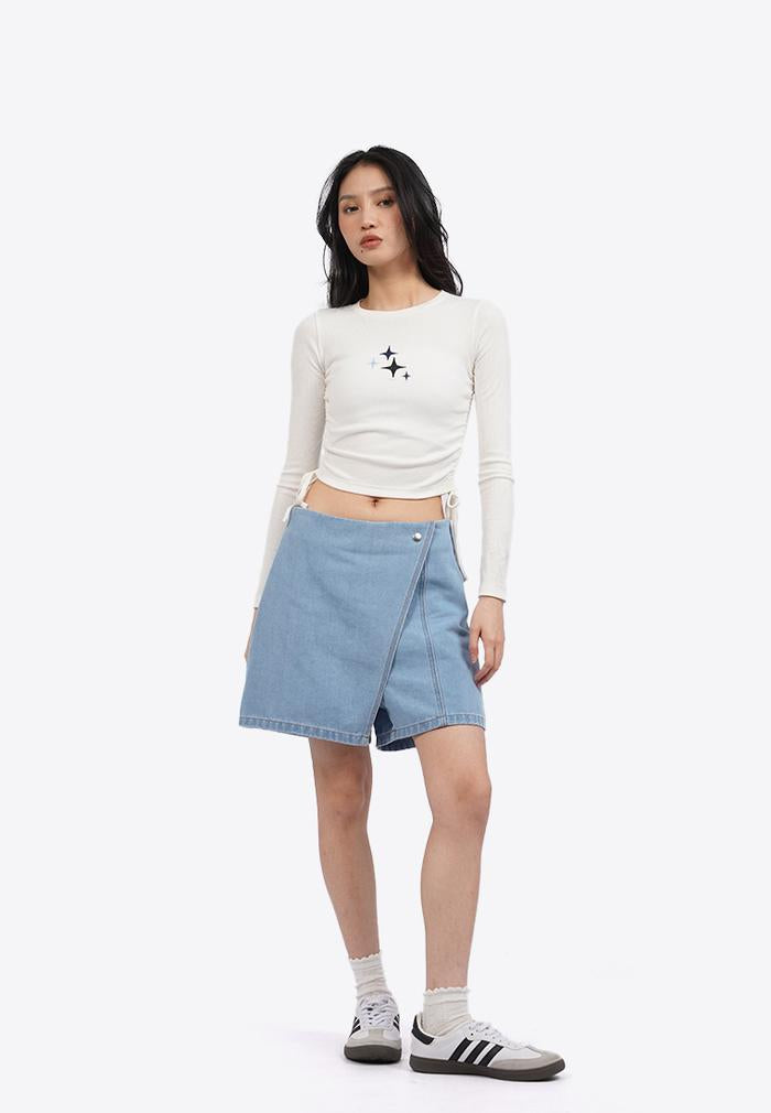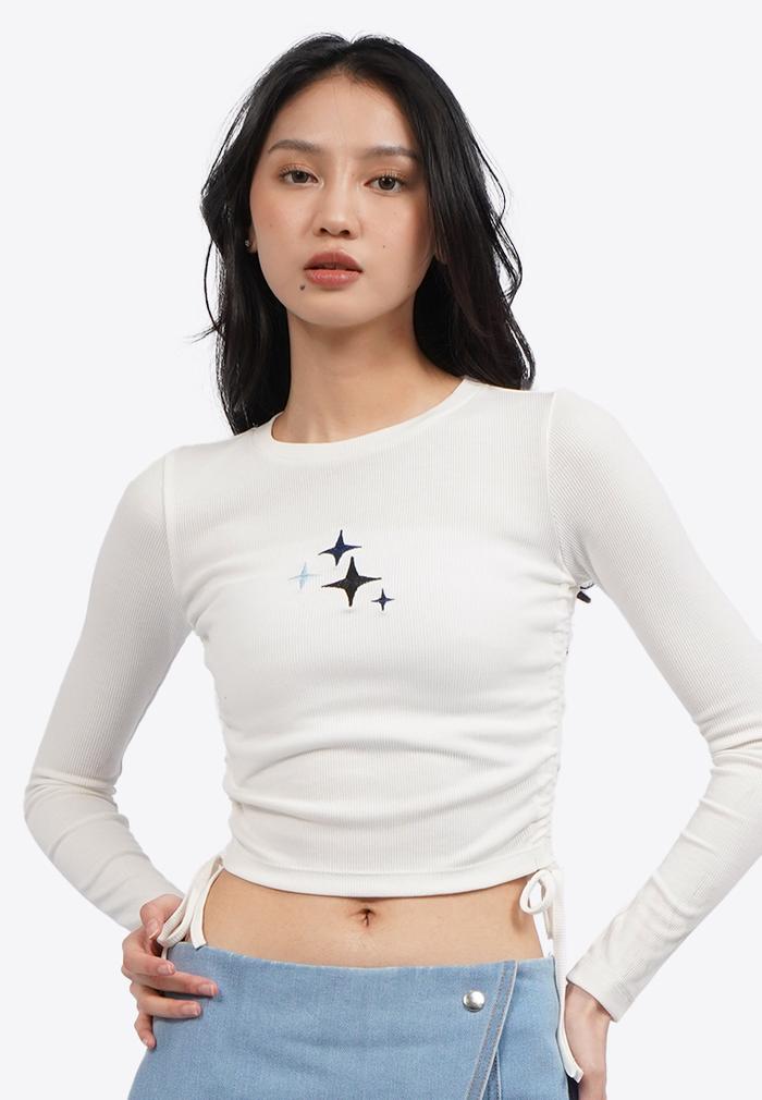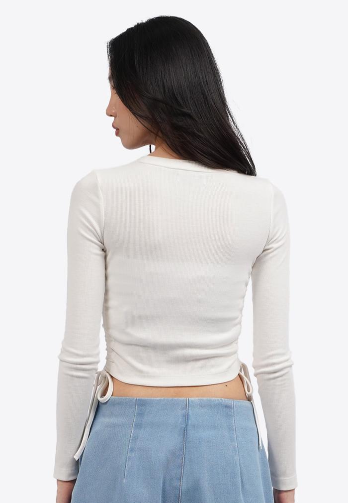 COLORBOX Long Sleeve Top with Side Drawstring Off White