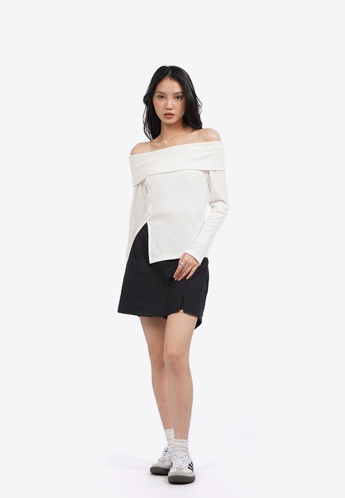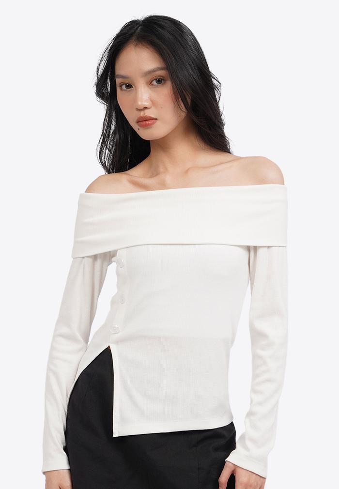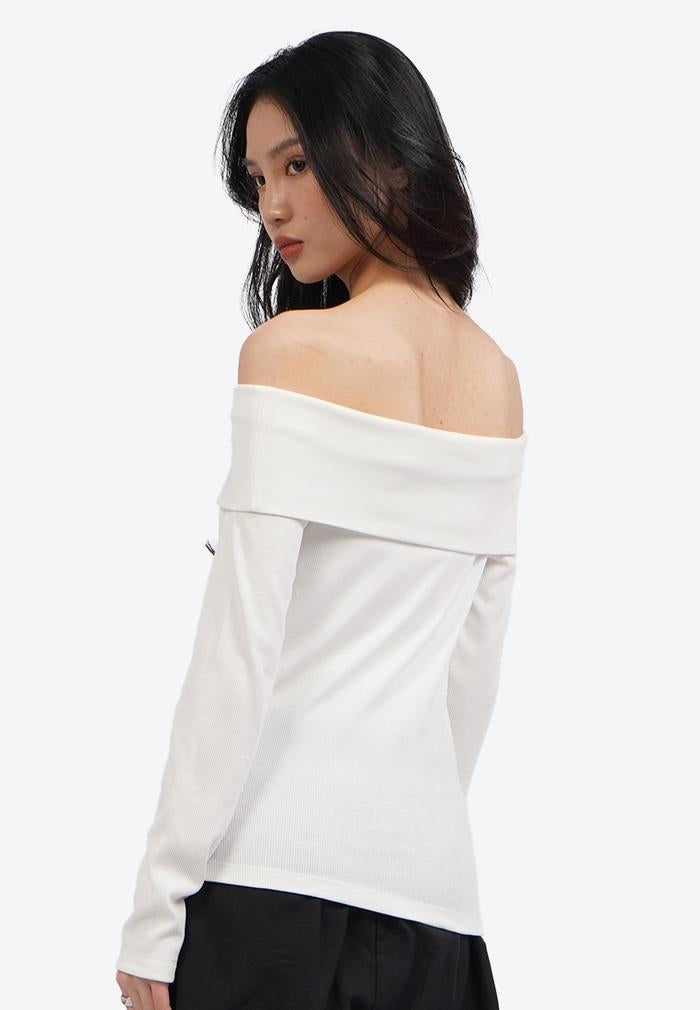 COLORBOX Off Shoulder Long Sleeve Top Off White