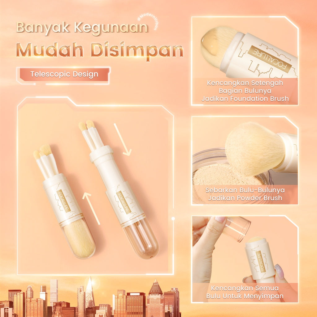 FOCALLURE #ModernUrban 4-In-1 Makeup Brush Set 4pcs Portable Telescopic Traveling Makeup Brush Kit