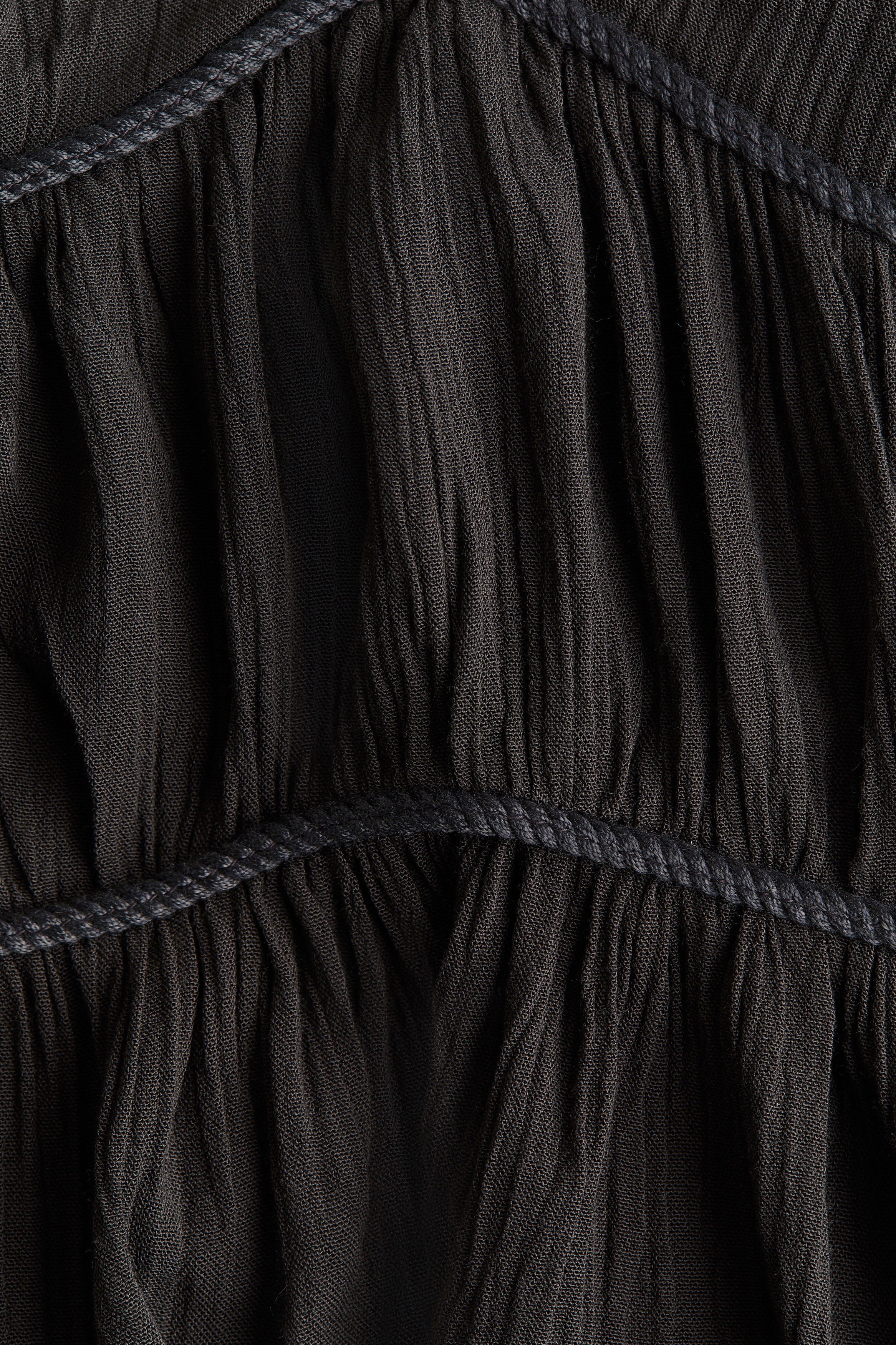 Atasan pas badan dengan anyaman viscose berkerut yang dihiasi dengan trim braid tipis di bagian depan. Memiliki garis leher berbentuk... Read more