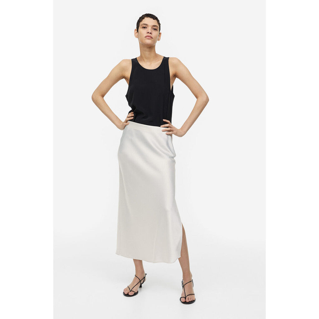 Ankle-length, fitted skirt in woven fabric with a sheen. Low waist with concealed elastication and a concealed zip and button... Read more