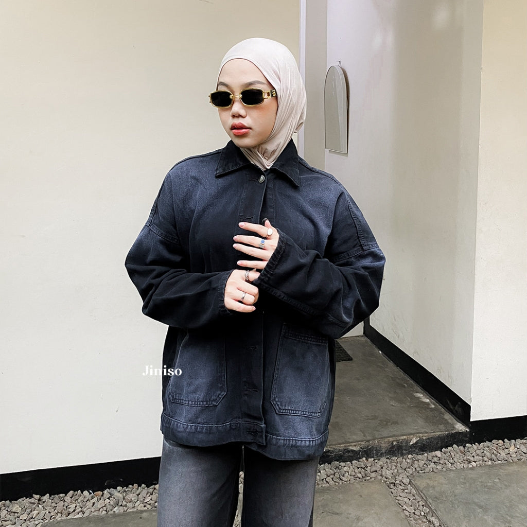 JINISO Jaket Jeans Oversize Onyx Black Spray