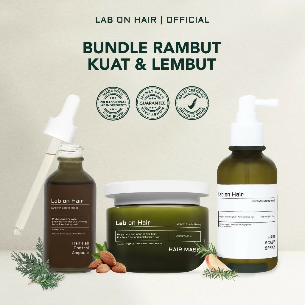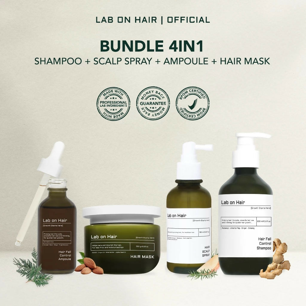 Lab on Hair Bundle 4in1 Shampoo + Ampoule + Scalp Spray + Hair Mask - Paket Lengkap Perawatan Rambut Untuk Mengurangi Rambut Rontok Kulit Kepala Kuat dan Rambut Lembut Anti Kusut Rontok
