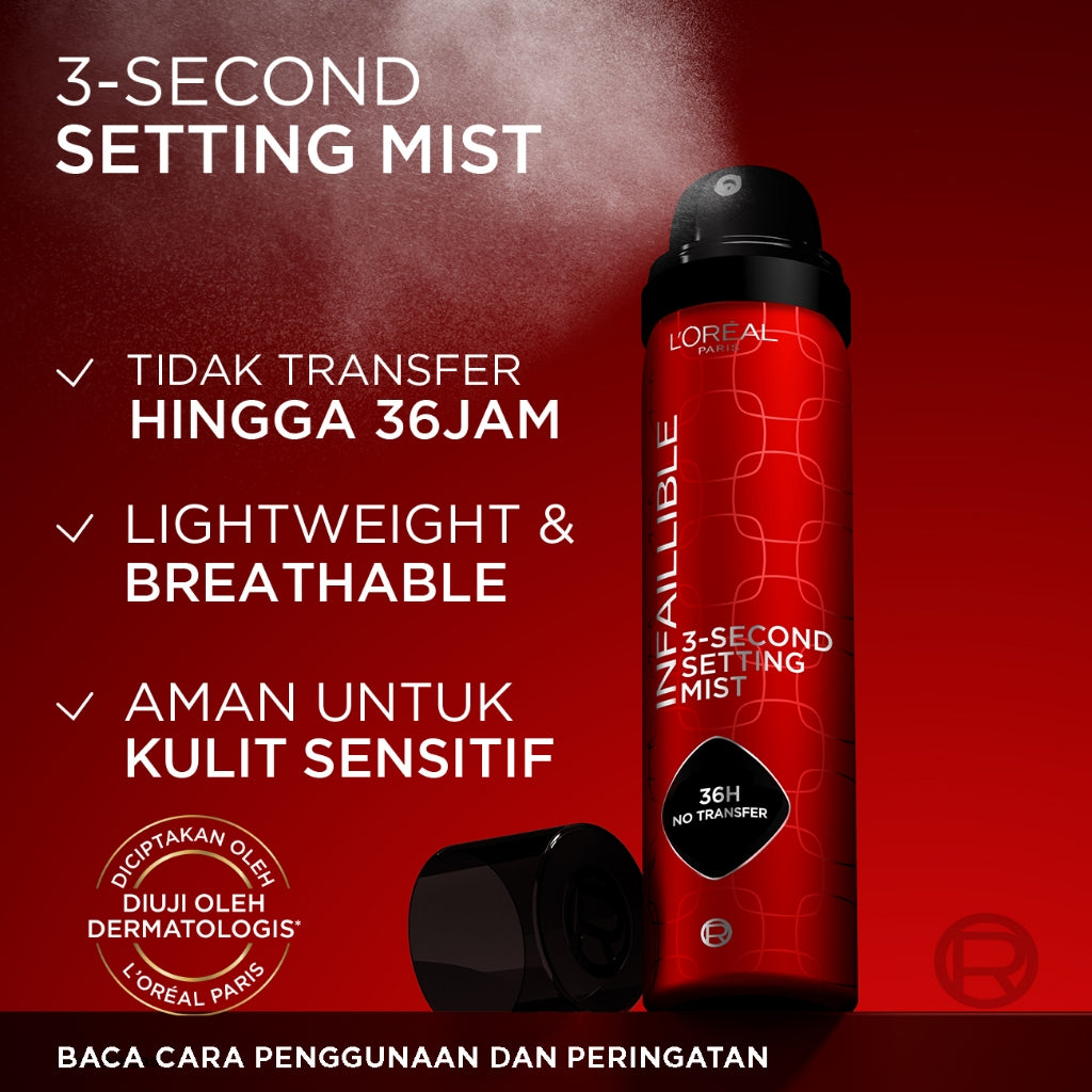• PRODUCT DESCRIPTION BARU! L'OREAL PARIS INFAILLIBLE 3-SECOND SETTING MIST! TRENDING SETTING SPRAY DI EROPA! 3, 2, 1, SET! Dalam... Read more