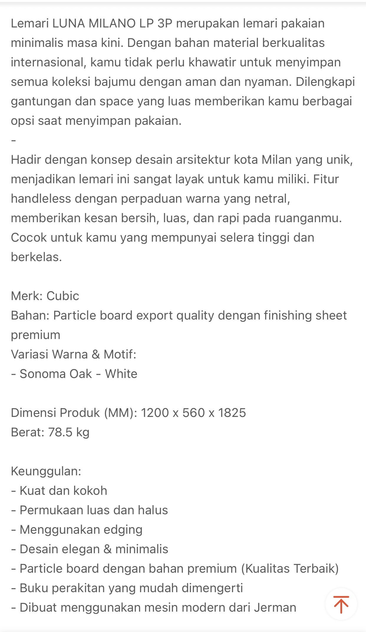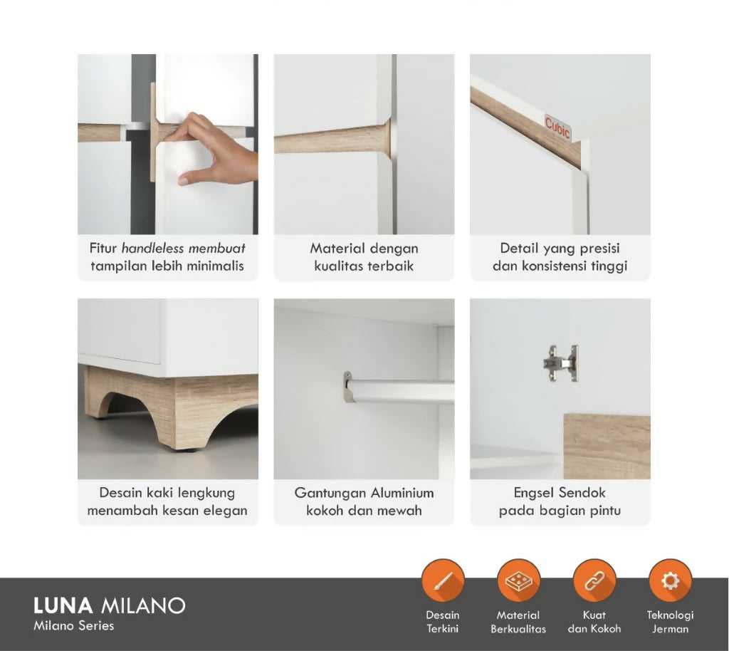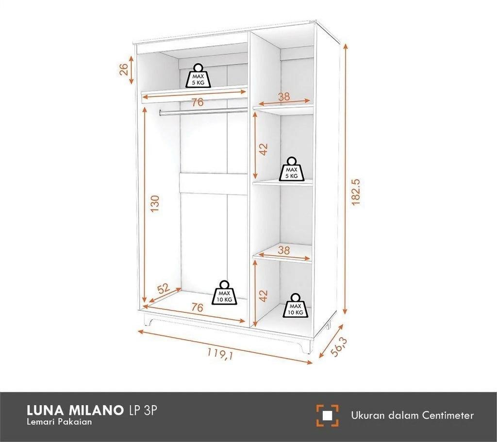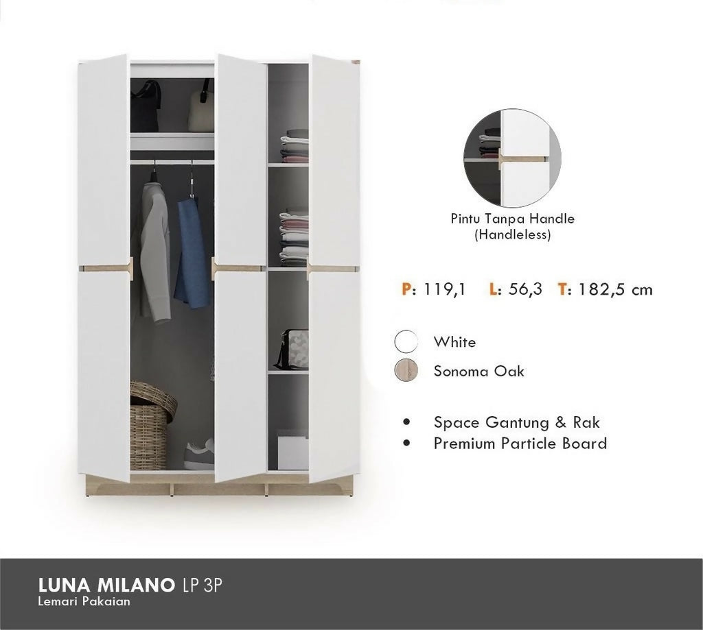LUNA MILANO LP 3P Lemari Pakaian 3 Pintu / Lemari Baju / Wardrobe