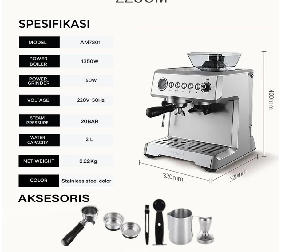 Mesin Kopi Multi/Grinder/Milk Frother 2 Boiler 20Bar 1350W -AM7301