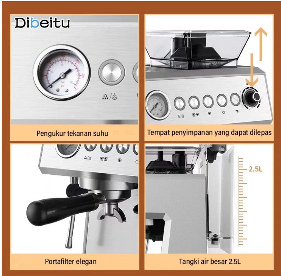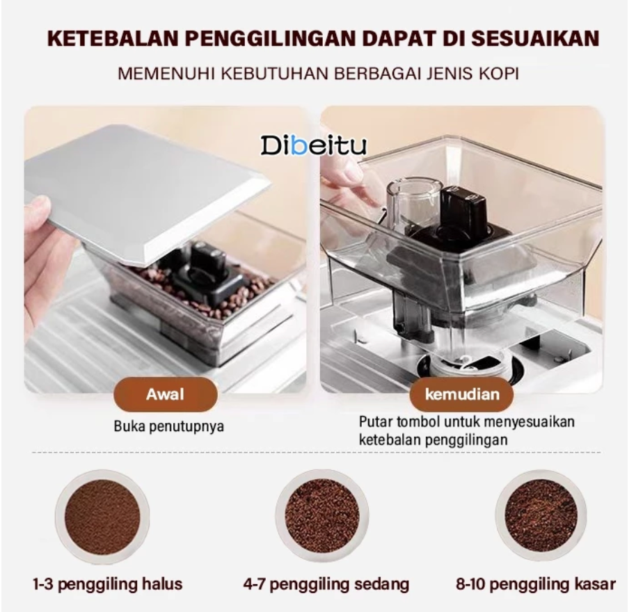 Informasi:Dimensi : 32x 32x 40cmDaya & Voltase : 1350W&220VKapasitas Tangki Air : 2LKapasitas Bean Hopper : 250g Cara Penggunaan:1. Biji... Read more