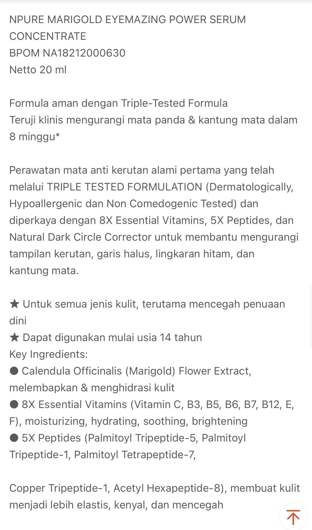NPURE Eye Serum / Marigold / Eyemazing Power Serum Concentrate/ Krim Mata / Anti Mata Hitam Panda / Kantong Mata